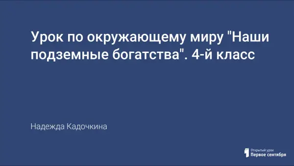 Цели урока: сформировать представления учащихся о подземных богатствах, познакомит детей с полезными ископаемыми, их применением, свойствами, способами добычи, охраной подземных богатств.