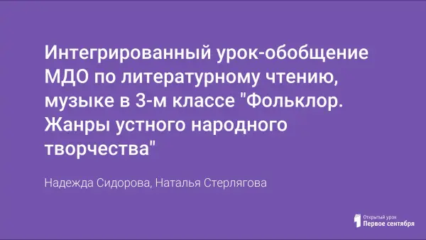 Интегрированный урок-обобщение МДО по литературному чтению, музыке в 3-м классе "Фольклор. Жанры устного народного творчества"