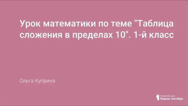 На уроке открывается новый способ вычислений, способствующий запоминанию случаев сложения в пределах 10, соответствующих случаев вычитания. Для достижения максимальных результатов выбрана технология деятельностного метода. Мотивация к учебной деятельности - с помощью учителя устанавливать связь между целью учебной деятельности и ее мотивом, с помощью технологии продуктивного чтения учиться выдвигать гипотезы, устанавливать причинно-следственные связи.