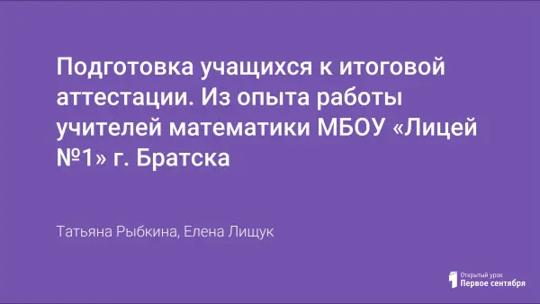 Подготовка учащихся к итоговой аттестации. Из опыта работы учителей математики МБОУ «Лицей №1» г. Братска