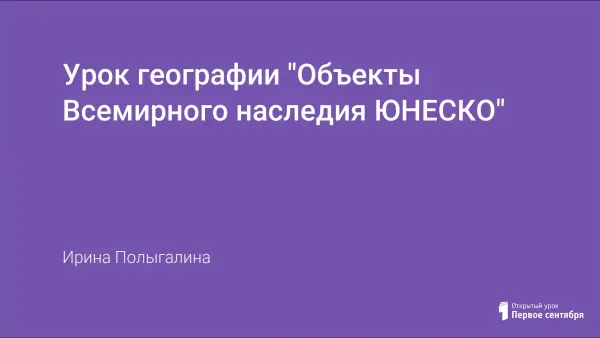 Урок проводится с целью расширения географической картины мира детей, помощи ребятам в ориентировании в мире непреходящих ценностей - уникальных географических объектов планеты - объектов Всемирного наследия человечества.