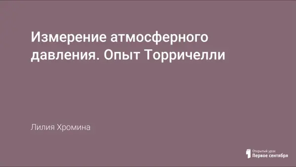 На уроке учащиеся знакомятся с примером определения атмосферного давления, с физическим содержанием опыта Торричелли.