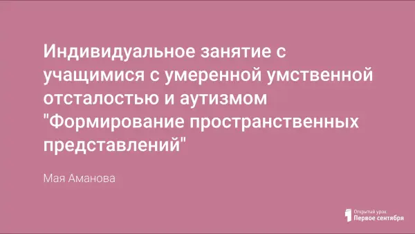 Формирование пространственных представлений у ребенка-аутиста с умеренной умственной отсталостью – одно из важнейших условий жизнеобеспечивающей ориентировки в окружении, основа его успехов при обучении письму, чтению, математике и другим предметам. Формирование пространственных представлений связано с использованием разных систем ориентации в пространстве. Базовой и наиболее естественной системой ориентации является схема тела.