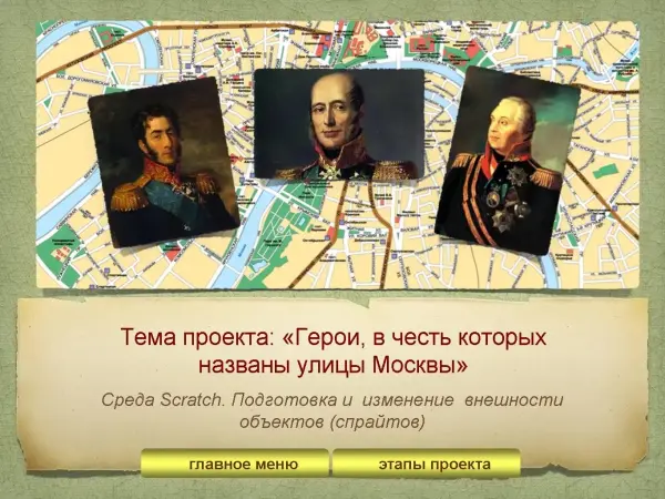 Занятие входит в цикл уроков, посвященных работе над общим проектом «Герои, в честь которых названы улицы Москвы». Каждый ученик работает над мини-проектом, посвященным одной улице. Цель проекта: формирование у детей навыков проектной деятельности, развитие познавательного интереса и творческих способностей.
