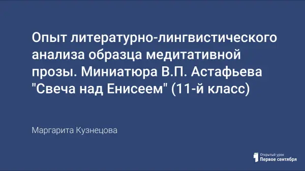 Цель статьи: показать один из вариантов работы со связным текстом в профильном (филологическом) классе, реализованный в рамках элективного курса «Анализ текста. Теория и практика (10–11-е классы)». Литературно-лингвистический анализ образца медитативной прозы позволяет интегрировать уроки русского языка и литературы, использовать новые педагогические технологии, совершенствовать общеучебные навыки, эффективно готовить выпускников к государственной (итоговой) аттестации в форме ЕГЭ.