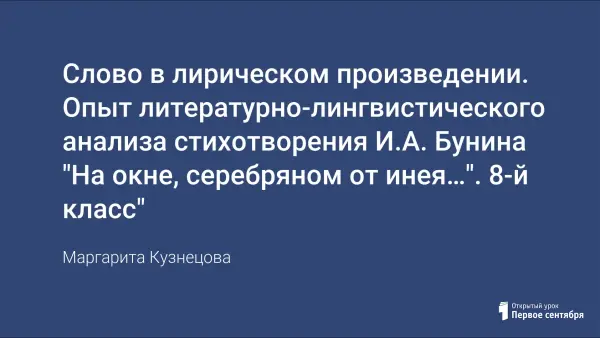 Литературно-лингвистический анализ лирического стихотворения позволяет интегрировать уроки русского языка, литературы, словесности, использовать новые педагогические технологии, совершенствовать общеучебные навыки. Материалы урока могут быть использованы на уроках литературы в 11-м классе при изучении лирики И.А. Бунина.