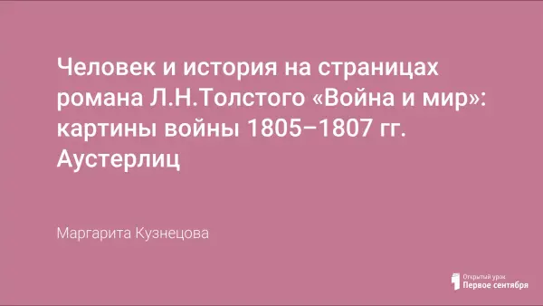 Учитель представляет опыт использования технологий осмысленного чтения и ИКТ при анализе эпизодов романа Л.Н. Толстого «Война и мир», посвящённых Аустерлицкому сражению, в 10-м классе. Учащиеся размышляют о том, как человек проявляет себя на войне, о взглядах Толстого,писателя и историка, открывают для себя «диалектику души».