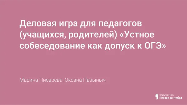 Цель деловой игры: познакомить участников образовательного процесса с процедурой устного собеседования; изучить функции каждого участника устного собеседования посредствам деловой игры.