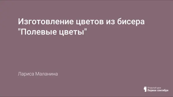 Изготовление цветов из бисера – увлекательное занятие. Данный конспект - начало цикла занятий по изготовлению цветов на первом году обучения, где воспитанники изучают основные техники низания бисером и легенды о цветах. Материал может быть интересен учителям начальных классов и педагогам дополнительного образования.