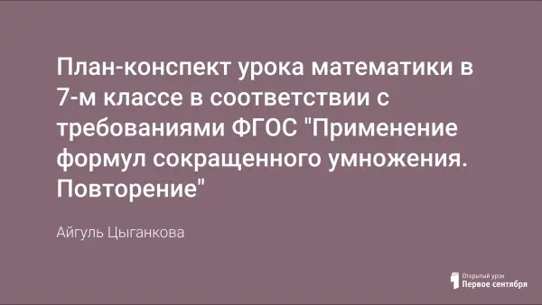 Цель: систематизировать знания и умения учащихся по теме «Формулы сокращенного умножения» и научить учащихся применять формулы сокращенного умножения при выполнении упражнений различной сложности и творческих заданий.