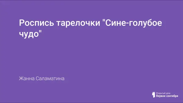 Занятие проводится с учащимися начальных классов. Ребята знакомятся с элементами гжельской росписи, учатся выполнять двойной мазок. Результат работы учащихся – сувенир-тарелочка с гжельской росписью.