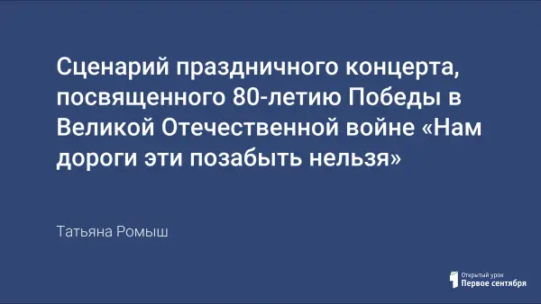 В статье автор предлагает сценарий праздничного концерта, посвящённого 80-летию Победы в Великой Отечественной войне.