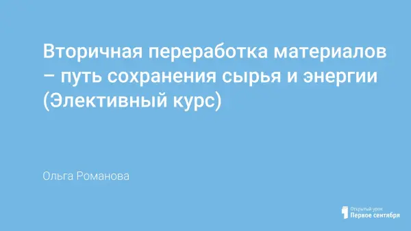 Элективный курс формирует целостное представление о значении вторичной переработки материалов как способе экономии сырья и энергии, реализует мировоззренческие, образовательные и воспитательные функции учебного процесса. Постановка проблемных вопросов, необходимость поиска информации, ее анализа, осмысления и представления способствует развитию и саморазвитию учащихся, формированию у них общеучебных навыков культуры умственного труда. Выполнение практических работ и строгое следование правилам техники безопасности служит развитию политехнических умений и навыков.