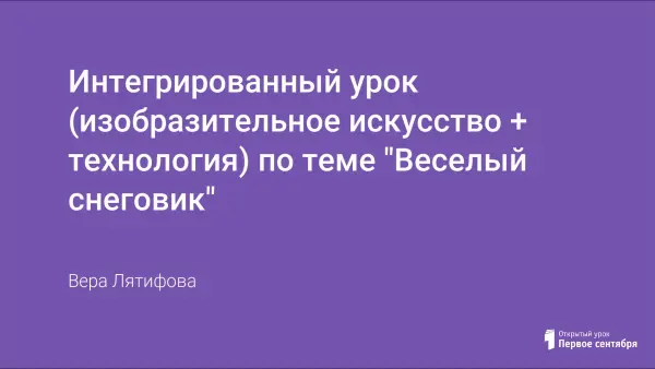 Открытый интегрированный урок (изобразительное искусство + технология) формирует умение строить изображение снеговика, выделять основные части предмета, правильно их располагать. На занятии продолжена работа со штампами по совершенствованию нетрадиционной техники создания «собственной» бумаги. Осуществляется коррекция и развитие произвольного внимания, мышления, мелкой моторики, развитие мелкой мускулатуры рук, воображения, мышления.