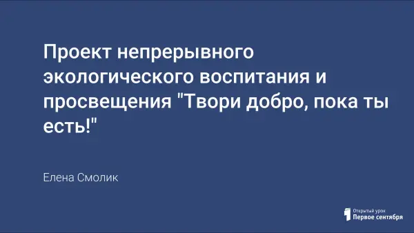Формирование экологической культуры подрастающего поколения в образовательном учреждении реализуется в городе Котельники через проект «Твори добро, пока ты есть!», где обучающиеся показывают высокий уровень достижений. Суть проекта - обобщение опыта и систематизация форм и методов экологического воспитания обучающихся.