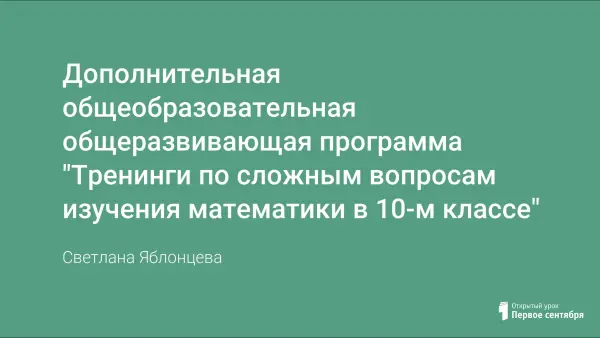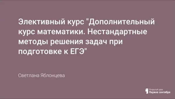 Курс рассчитан на 68 часов, которые проводятся в течение двух лет обучения с учащимися 10-го, 11-го классов. В курсе решается большое количество сложных задач, обучение учащихся моделированию процесса решения математических задач. Акцент в проведении курса делается в сторону подготовки к ЕГЭ. В результате работы учащиеся должны знать методы решения различных видов уравнений и неравенств; основные приемы решения текстовых задач; элементарные методы исследования функции