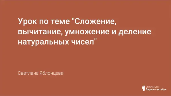 К уроку математике по теме "Сложение, вычитание, умножение и деление натуральных чисел" прилагается презентация.