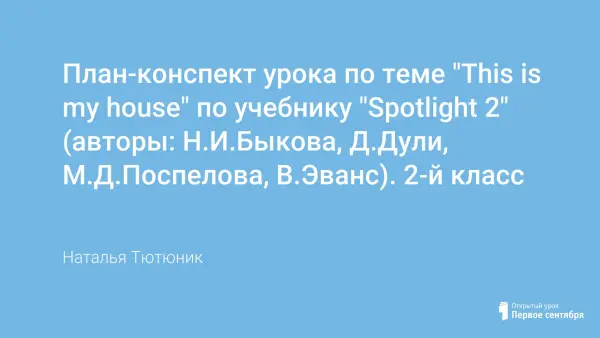 В публикации представлен завершающий урок по теме «This is my House». Урок направлен на закрепление и совершенствование учащимися знаний, умений и навыков по пройденной теме. Данный урок прививает интерес к изучению английского языка и английской культуры, способствует развитию творческой личности учащихся и расширяет их кругозор.