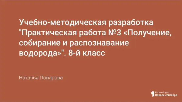 Учебно-методическая разработка "Практическая работа №3 «Получение, собирание и распознавание водорода»". 8-й класс