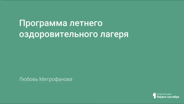 В работе рассматриваются вопросы организации летнего отдыха детей школьного возраста с тем, чтобы этот отдых способствовал их оздоровлению и приобщению к природоохранной деятельности.