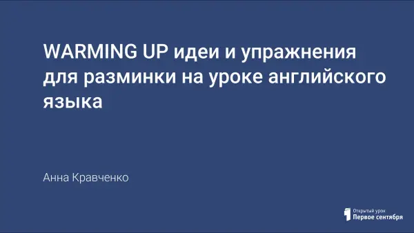 WARMING UP идеи и упражнения для разминки на уроке английского языка