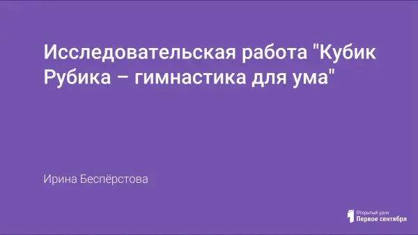 Цель – исследование актуальности кубика Рубика. Математические механические головоломки формируют логическое мышление школьников, развивают круг интересов, не связанных с компьютером, повышают коммуникативные способности подростков.