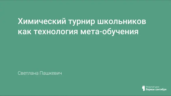 В статье описывается образовательный формат химического турнира школьников по решению открытых задач как современный интерактивный способ организации мета-обучения в рамках преподавания химии (из опыта работы учителя химии Лицея №130 г.Екатеринбурга). В предложенном материале представлены авторские задачи, применяемые учителем для обучения «химическому творчеству» с использованием приемов технологи ТРИЗ.