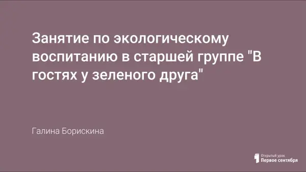 Занятие по экологическому воспитанию в старшей группе "В гостях у зелёного друга" позволяет расширить знания детей о лесе, о том, что он является домом для животных и растений, закреплять культуру поведения в природе, бережное отношение к ней.
