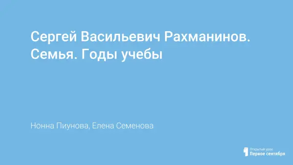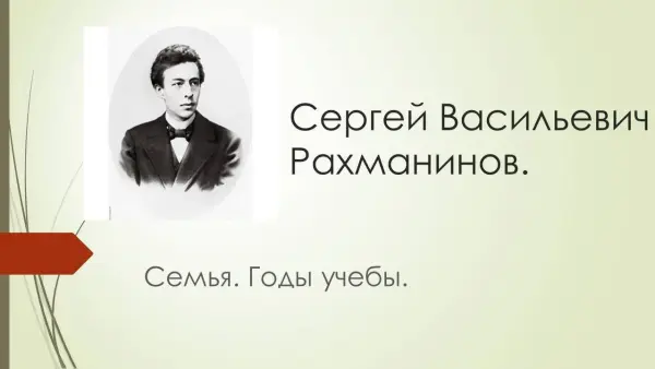 Истоки музыкальной одаренности С.В.Рахманинова: дед, отец, мать. Домашнее обучение в семье Рахманиновых. Разлад в семье. Петербургская консерватория. Музыкальные впечатления того времени. Перевод в Московскую консерваторию. Личность Н.С.Зверева и его влияние на Рахманинова. Старшее отделение консерватории. Педагоги Рахманинова. Дипломная работа как начало творческого пути.