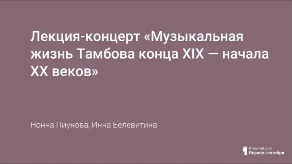 Лекция-концерт «Музыкальная жизнь Тамбова конца XIX — начала XX веков»
