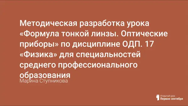 Цель занятия: изучить виды линз, свойства, характеристики; научить строить изображения в линзах, определять фокус линзы.
