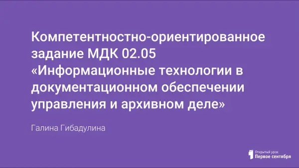 В работе представлены два компетентностно-ориентированных задания (КЗ): создание web-сайта об автоматизации делопроизводства и создание базы данных для автоматизации документооборота в организации (для учета входящей корреспонденции). Задания могут быть использованы для практических работ по информатике, самостоятельной работы учащихся. В приложении 1 представлен файл базы данных.
