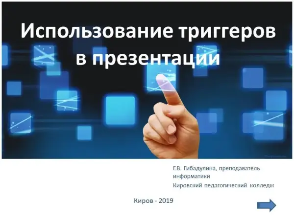 В работе представлен теоретический материал по разработке интерактивных заданий в презентации MS PowerPoint с помощью триггеров и задания для практической работы. Задания практической работы могут быть использованы также для проведения практических работ по информатике и ИКТ при изучении темы «Создание презентаций», для организации самостоятельной работы учащихся.