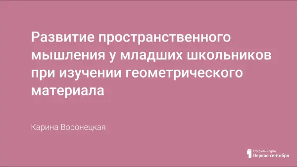 Интерес к проблеме формирования пространственных представлений у детей младшего школьного возраста на уроках математики вызван её актуальностью и недостаточной разработанностью. Математика способствует развитию у детей мышления, памяти, внимания, творческого воображения, наблюдательности; даёт реальные предпосылки для развития пространственных представлений учеников. Такому формированию способствует изучение геометрического материала. В настоящее время существует противоречие между наличием разработанных методов и приёмов формирования пространственных представлений на уроках математики и недостаточностью специальных заданий, способствующих развитию способностей учащихся начальной школы.