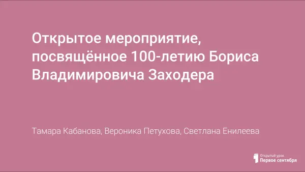 Открытое мероприятие, посвящённое 100-летию Бориса Владимировича Заходера