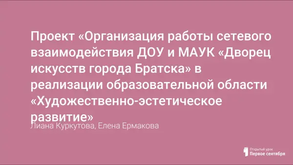 Проект «Организация работы сетевого взаимодействия ДОУ и МАУК «Дворец искусств города Братска» в реализации образовательной области «Художественно-эстетическое развитие»
