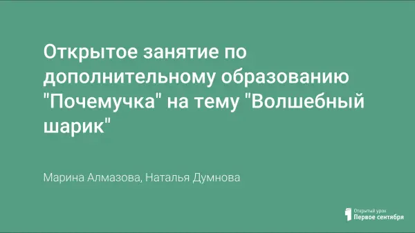 Открытое занятие по дополнительному образованию "Почемучка" на тему "Волшебный шарик"