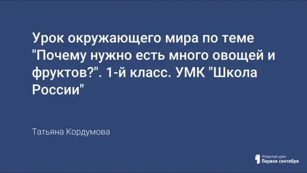 Цель урока: систематизировать и расширить знания об овощах и фруктах, познакомить учащихся с витаминами, их значением для человека.