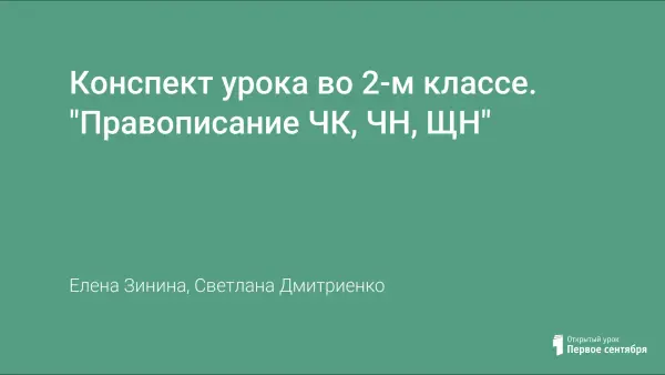 Конспект урока во 2-м классе. "Правописание ЧК, ЧН, ЩН"