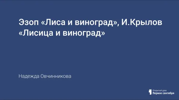 Цель урока: сравнить две басни, в которых рассказана одна и та же история, на материале басен Эзопа «Лиса и виноград», И.Крылова «Лисица и виноград».