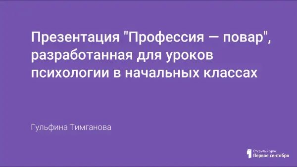 Автор разработал коллекцию презентаций по проблеме подготовки учащихся к выбору профессий. В ее коллекции 18 презентаций и 2 видеофильма. Она считает, что использование презентаций, разработанных в рамках программы "В мире профессий", позволяет развивать образное мышление учащихся и эстетическое восприятие ими информации, концентрировать их внимание, улучшать зрительную память. Содержание презентации имеет немаловажное значение для развития познавательных интересов младшего школьника. Предлагаемые ЦОР (цифровые образовательные ресурсы) используется педагогом-психологом на уроках психологии в 3–4-х классах на этапе изучения нового материала. Данная презентация может быть востребована учителями начальных классов и психологами общеобразовательных школ.
