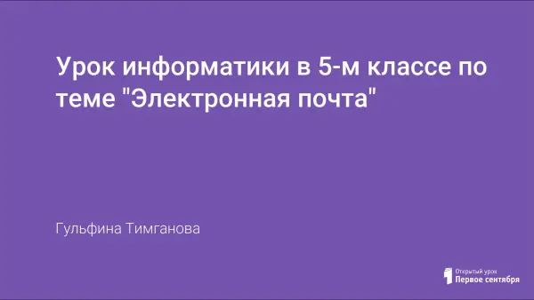 Урок объясняет новую тему "Электронная почта", составлен по УМК Л.Л.Босовой, А.Ю.Босовой для 5-го класса (ФГОС).