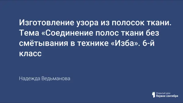 В статье описан урок технологии для девочек 6-го класса из раздела «Рукоделие» по теме «Лоскутная мозаика». На уроке разбирается тема «Соединение полос ткани без смётывания в технике «Изба». Девочки учатся гармоничному подбору ткани по цветовой гамме, раскрою ткани по шаблону, у них формируются умения работать по технологической карте и развивается самоконтроль ширины машинного шва при стачивании полос ткани. На уроке закрепляются правила приутюживания швов притачивания и готового изделия.