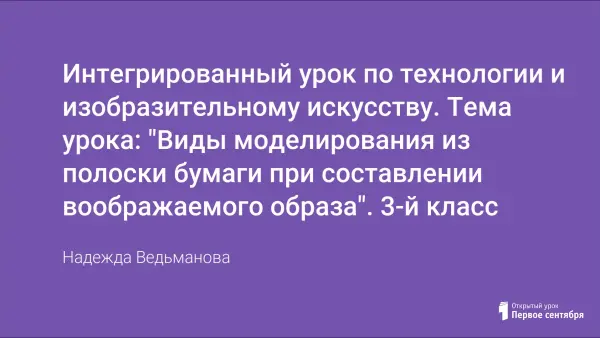 В статье описан интегрированный урок технологии и ИЗО для 3-го класса. На занятии ИЗО учащиеся формируют умения рисовать черты лица человека. На уроке, развивая воображение, учатся различному моделированию полоски бумаги, и из полученных элементов оформляют объемную аппликацию – прическу воображаемого нарисованного ранее образа. Работая в группе, придумывают название своего салона-парикмахерской и рекламу к нему.