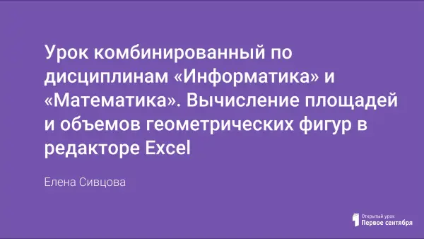 Цель урока: усвоение новых знаний. Формирование знаний об использовании редактора электронных таблиц для решения задач математики; вычисление площадей и объемов геометрических фигур; освоение компетенций использования информационно-коммуникативных технологий.