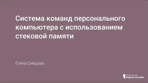 Цель урока: ввести понятия система команд персонального компьютера, стековая организация памяти. Закрепить и систематизировать знания учащихся об ускорении работы процессора. Рассматривается пример использования стековой памяти как способ регистровой адресации для ускорения выполнения команд в процессоре.