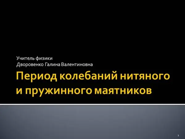 Цель урока: рассмотреть процесс колебаний на примере нитяного и пружинного маятников, выяснить зависимость периода колебаний от различных физический величин: длины нити, ускорения свободного падения, коэффициента жесткости и массы.