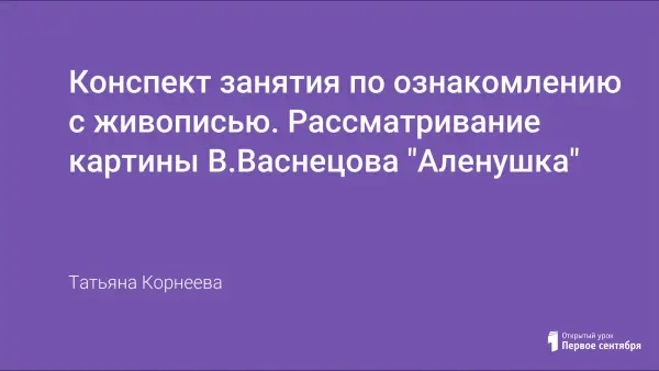 Цели занятия: дать детям знания о жанре портрета, его признаки и особенности изображения; учить выделять средства выразительности; формировать представление о портрете не только как о внешнем виде человека, но и о его душевном состоянии, настроении.