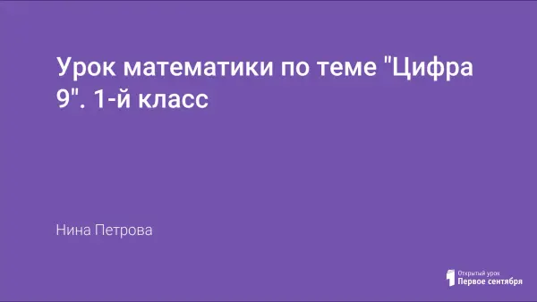 Цели урока: познакомить с составом числа 9, с его качественной и количественной характеристикой; закрепить представление о взаимосвязи между частью и целым; учить составлять и сравнивать выражения; развивать навыки написания цифры 9.