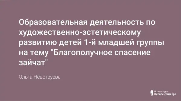 В статье на основе системно-деятельностного подхода описан конспект образовательной деятельности по художественно-эстетическому развитию детей 1-й младшей группы на тему «Благополучное спасение зайчат». Целью занятия является формирование у детей умения рисовать вертикальные линии способом ритмичного расположения штрихов. В работе применяются нетрадиционные методы рисования.